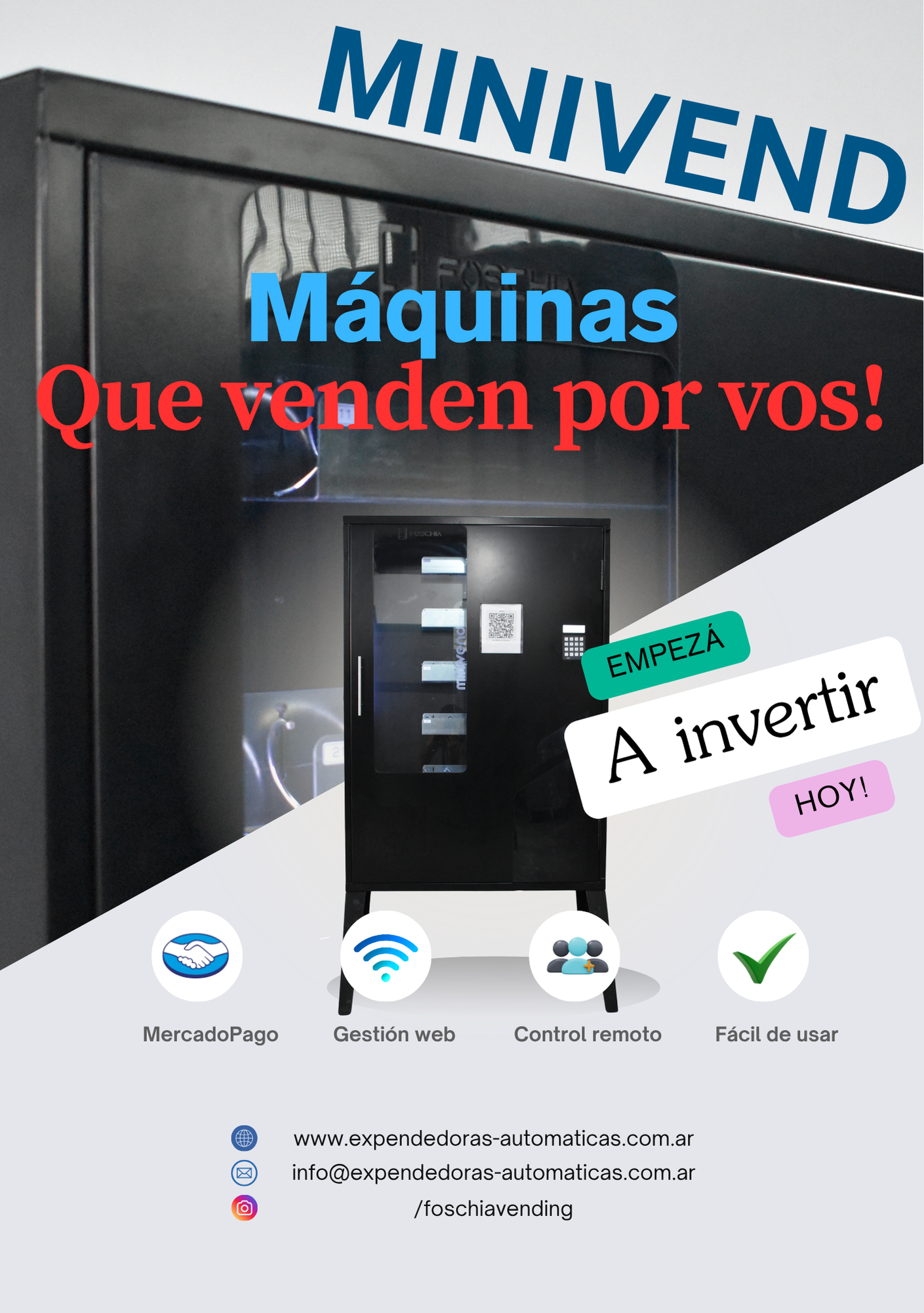Foschia Vending es una empresa argentina fabricante de expendedoras automáticas y sistemas de expendio, especializada en el diseño, desarrollo y fabricación de máquinas adaptadas a cada negocio. Brindamos soluciones completas con soporte técnico local y atención personalizada.